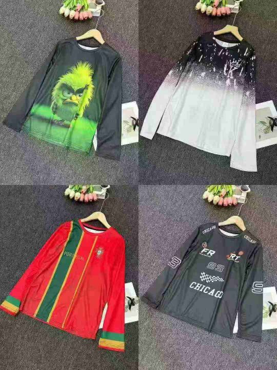2.9清跨境外贸童壮印花长袖男女款T恤,大版宽松型后领...