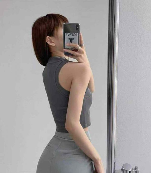 夏季新款美式辣妹冰丝弹力修身显瘦纯色工字背心,独立...