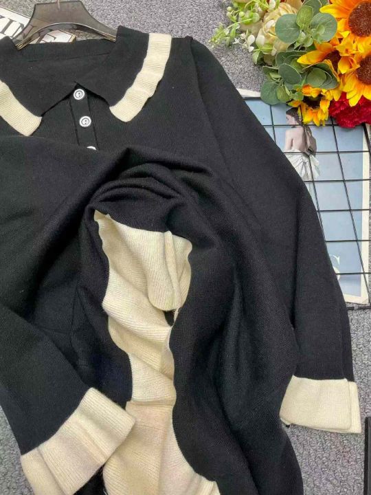 秋冬新款法式复古宽松百搭撞色娃娃领包芯纱毛衣连衣裙,独立包装,均码面料软糯舒适弹力大,200件,全清8.9元超低价秒杀!