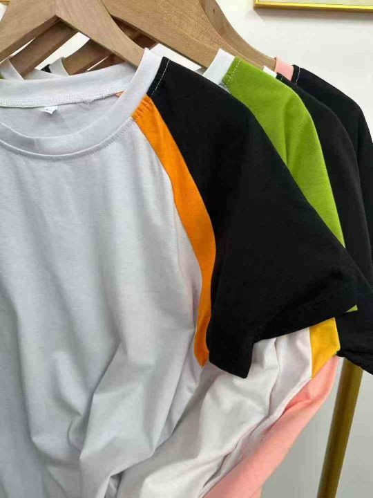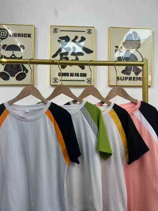 天猫在售款880件左右高品质夏季常规版纯棉插肩拼色休闲百搭短袖,码数S-2XL,单款四色,十件一包装