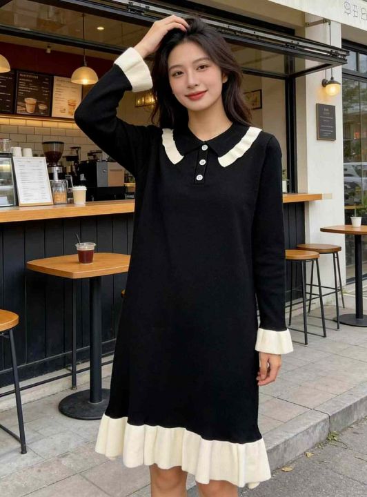 秋冬新款法式复古宽松百搭撞色娃娃领包芯纱毛衣连衣裙,独立包装,均码面料软糯舒适弹力大,200件,全清8.9元超低价秒杀!