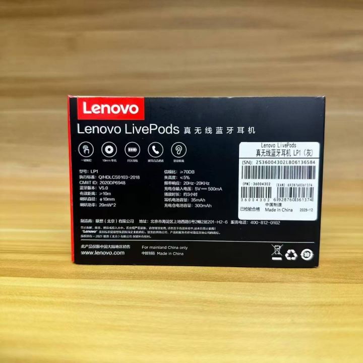 联想TWS蓝牙耳机LP1数量:467个每箱:100pcs/箱...