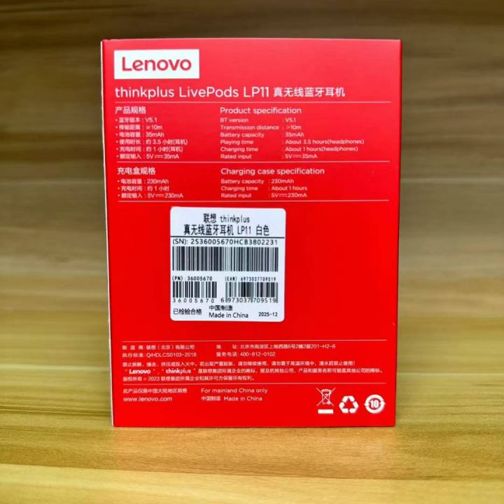 联想TWS蓝牙耳机LP11数量:562个每箱:100pcs/箱...