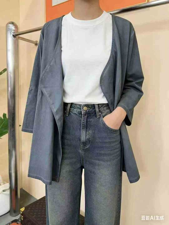 品牌外贸原单开衫外套,数量113件,码数SML单款蓝色,袖子两种穿法,面料挺括有型,类似仿牛仔面料,独立包装!