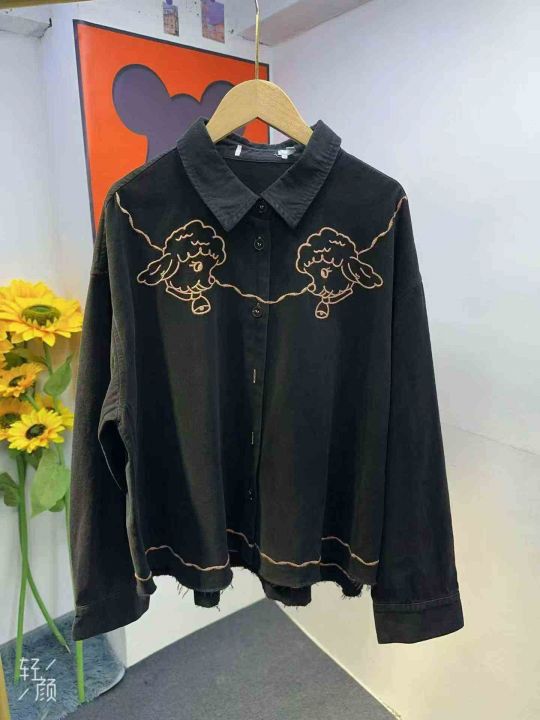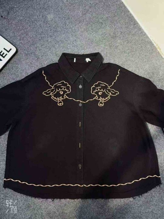 线条绣花波浪衬衫女,品牌剪标,纯棉重磅,面料:纯棉,颜色:黑色,特点刺绣,独立包装,货品新净,470件左右,全清12.8分货+1