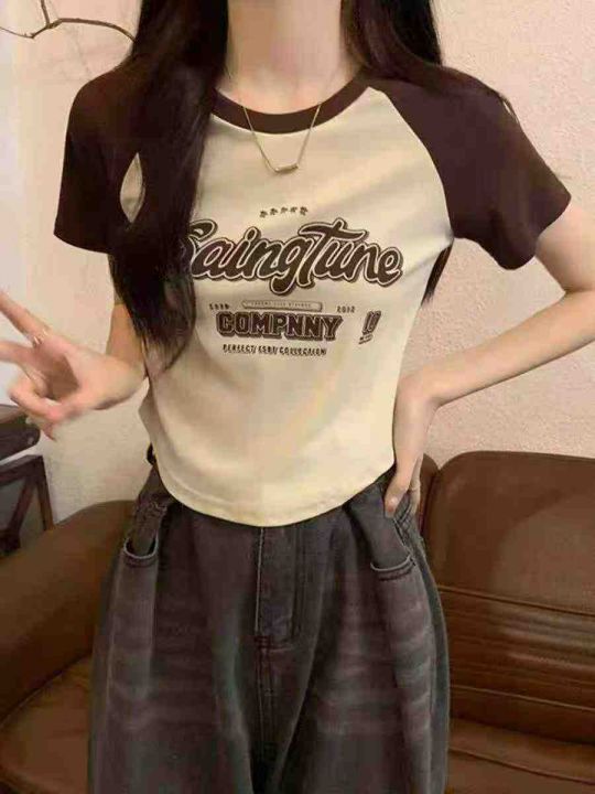 夏季新款美式撞色插肩复古印花针织短袖T桖,独立包装,均码面料柔软舒适弹...