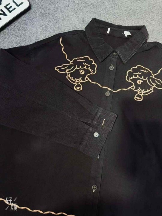 线条绣花波浪衬衫女,品牌剪标,纯棉重磅,面料:纯棉,颜色:黑色,特点刺绣,独立包装,货品新净,470件左右,全清12.8分货+1