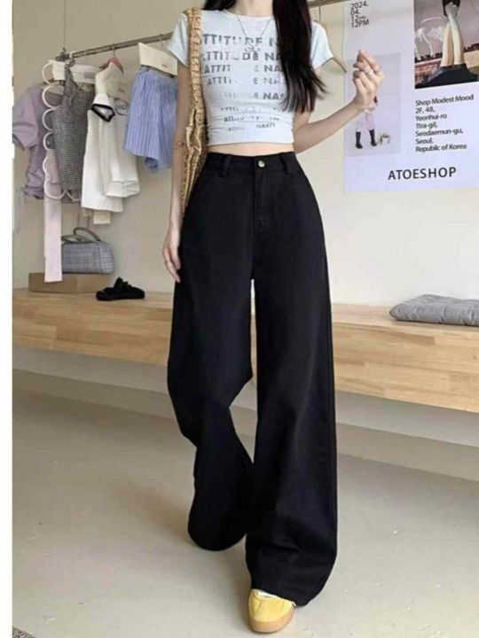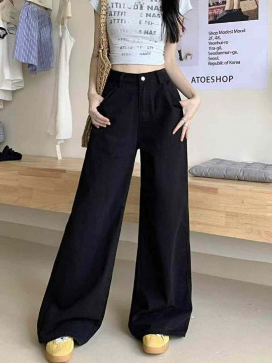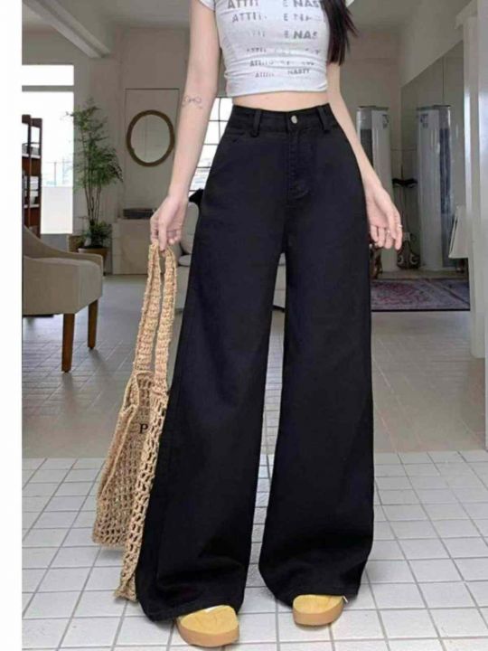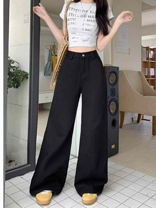 春秋新款复古高腰宽松直筒阔腿牛仔裤,独立包装,码数...