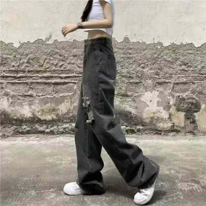 春夏季新款网红复古洗水棉破洞牛仔直筒阔腿裤,独立包...