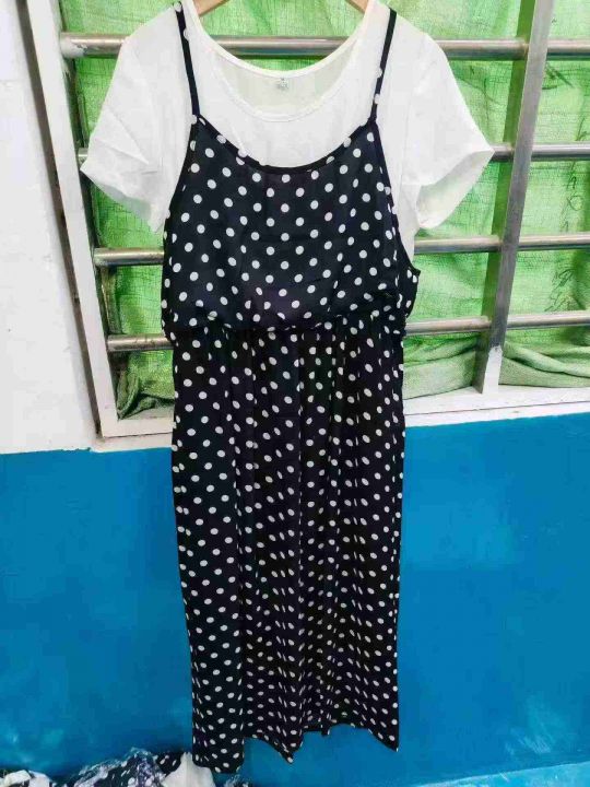 140件左右女装波点假两件雪纺连衣裙,有内衬,独立包装 码数S-2XL