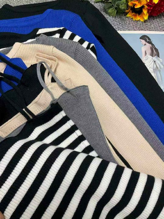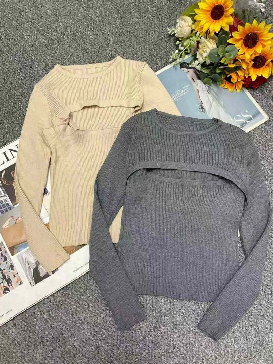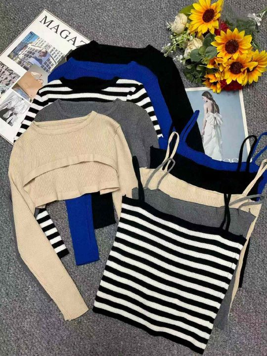 春季新款辣妹性感设计款针织毛衣2件套,独立包装,均...