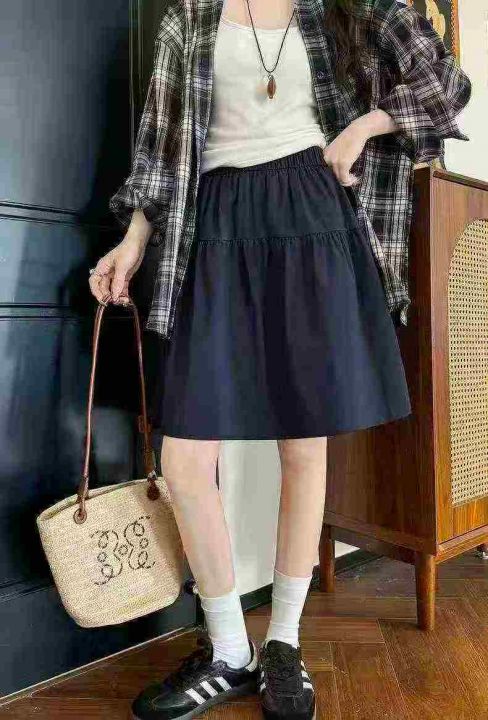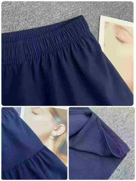 藏蓝色休闲半身裙206件6.8,面料舒适,松紧腰,拼接设...