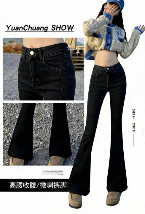 春季新款网红复古洗水棉高弹力微喇叭牛仔长裤,独立包装带腰卡,码数S-L码...