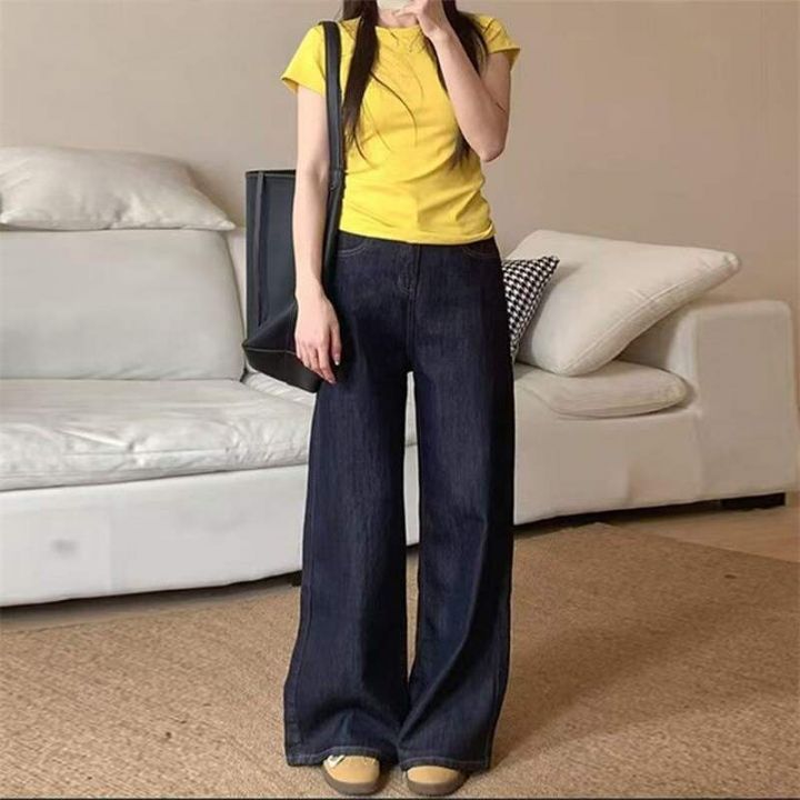 春秋新款复古高腰宽松直筒阔腿牛仔裤,独立包装,码数M--2XL码,560件,全...