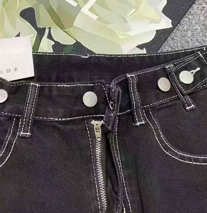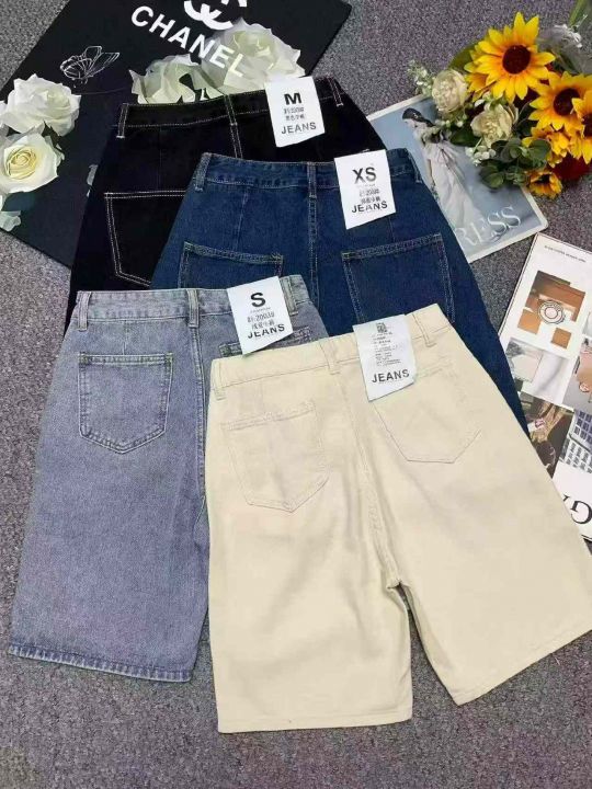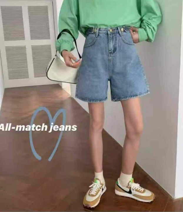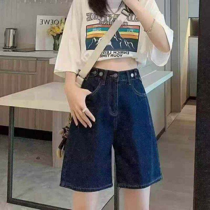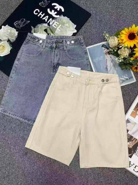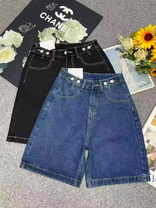 夏季新款设计款可调节直筒阔腿牛仔短裤,独立包装带腰...
