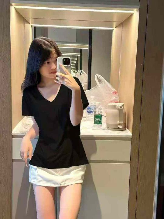 电商仓回收557件黑色纯棉显瘦复古辣妹V领T恤,码数M-3XL。面料柔软舒适有弹力,带纸板独立包装,分货➕0.5。