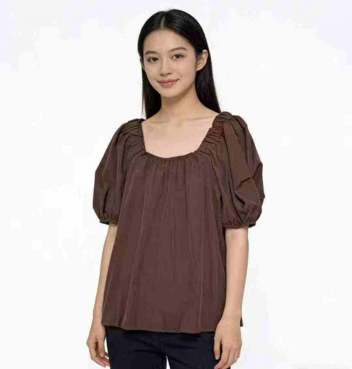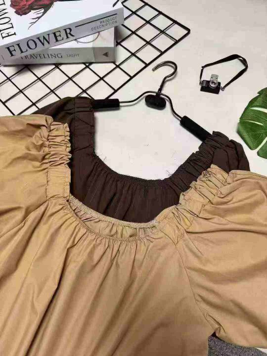 韩系甜美温柔风圆领泡泡袖上衣,整款两色,独立包装 1-2码(S- M)