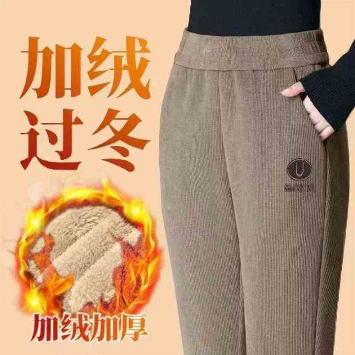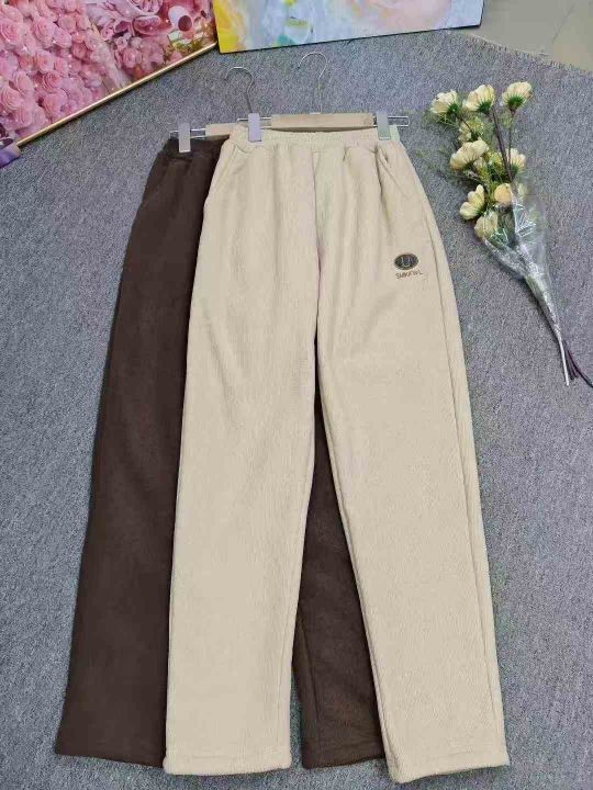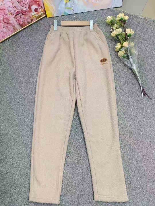 秋冬加绒加厚简约百搭哈伦裤女刺绣高腰显瘦裤子,独立...