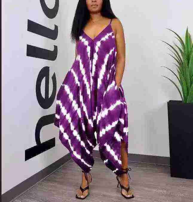 5.8清欧美爆款印花,时尚宽松吊带连体裤 ,整款五色,数量:247件,码数:s...