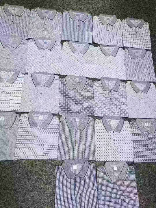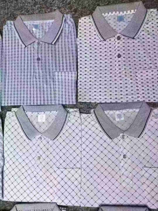 ☕️中老年男装翻领冰丝短袖T恤装现货有要的联系,现货5000件全清8.8元,尺码一捆50 ~52~ 54 ,多花型,每件衣服都有口袋,200件起9.9元