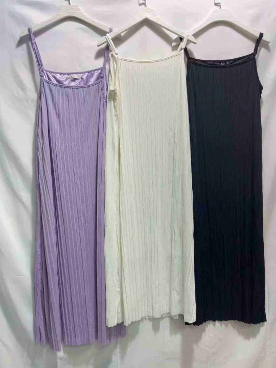 全清4,分货+1,无袖外穿吊带裙女2024新款夏季宽松小众褶皱显瘦纯色连衣裙长裙女,双层,码数S-L,数量60条