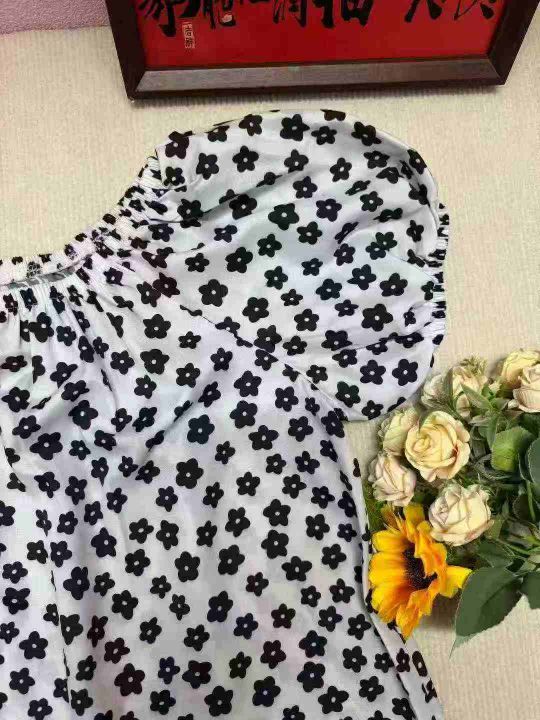 时尚百搭女士碎花雪纺圆领一字领露肩洋气短袖上衣.单款单色1-3码168件独立包装全清5.8不分货