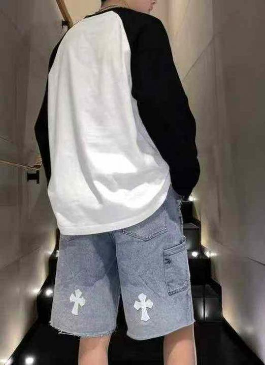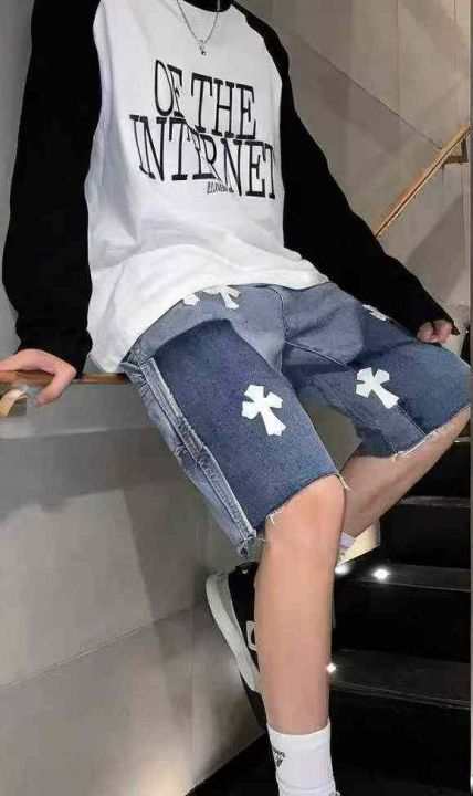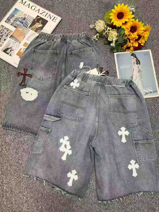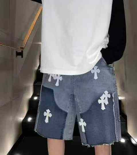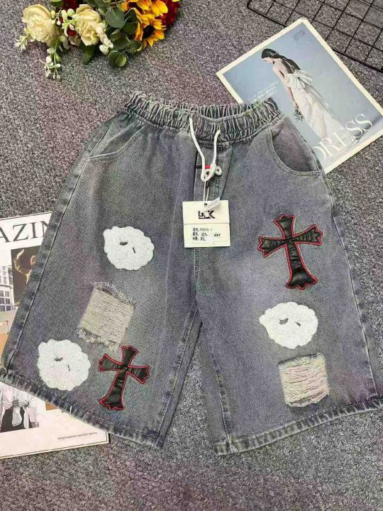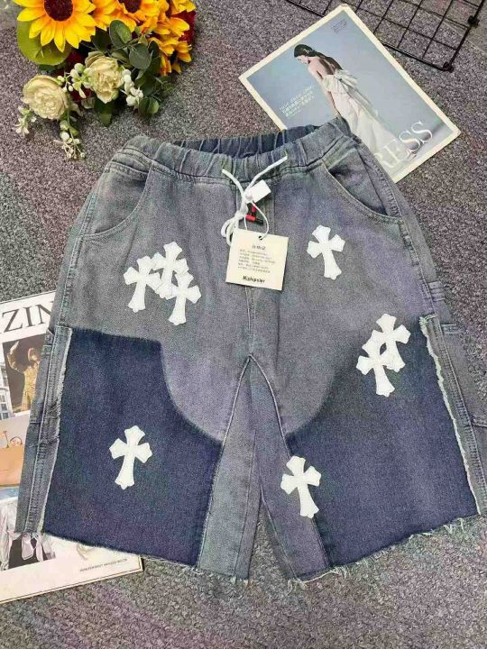 捡漏款,夏季新款男士重工贴标潮牌设计款松紧腰牛仔短...