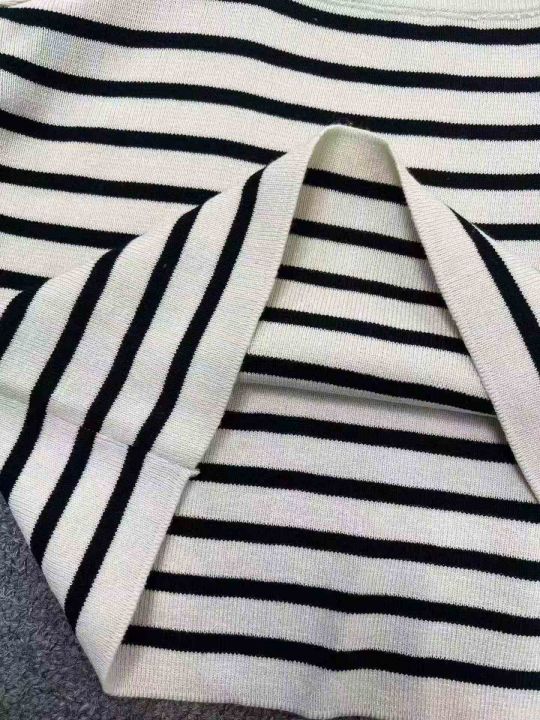 ☕️黑白条纹短袖u领露锁骨针织t恤女夏天薄款高级感正肩冰丝上衣280件全清7.8元 ,分货8.8元,均码高弹力,单款2色,辣妹针织条纹T恤[庆祝][庆祝][庆祝]