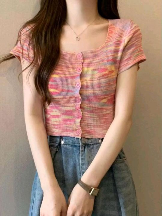 夏季新款撞色彩虹条纹针织开衫,独立包装,均码年龄柔...