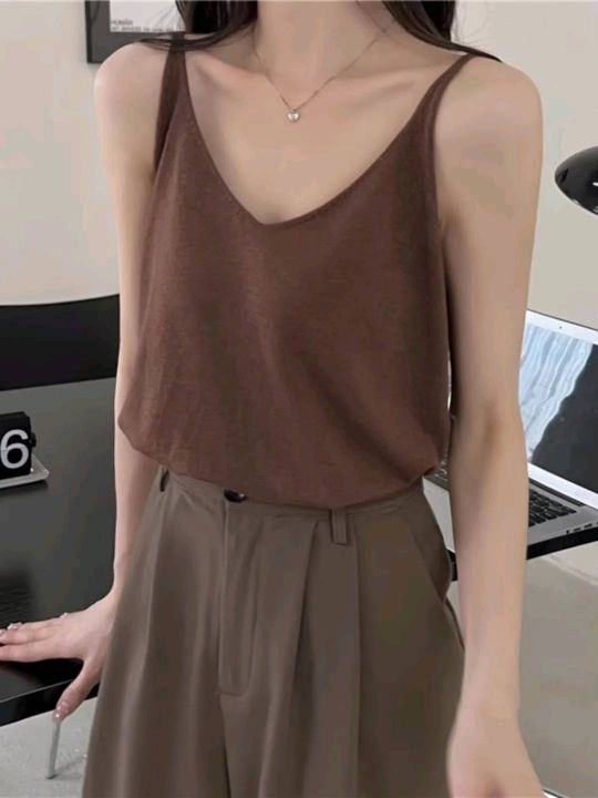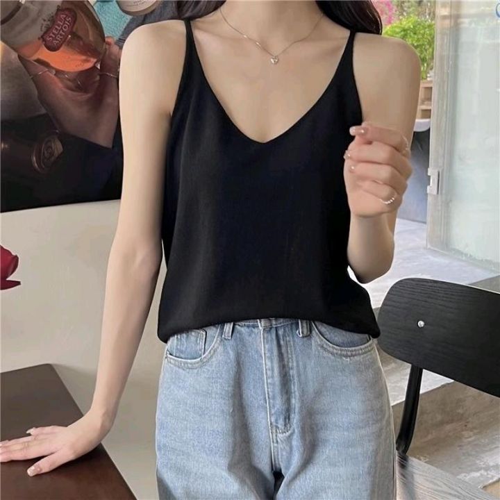 夏季新款净版简约宽松百搭冰丝针织吊带背心,独立包装...
