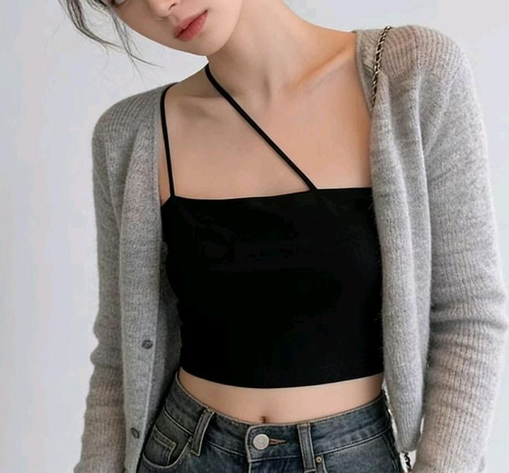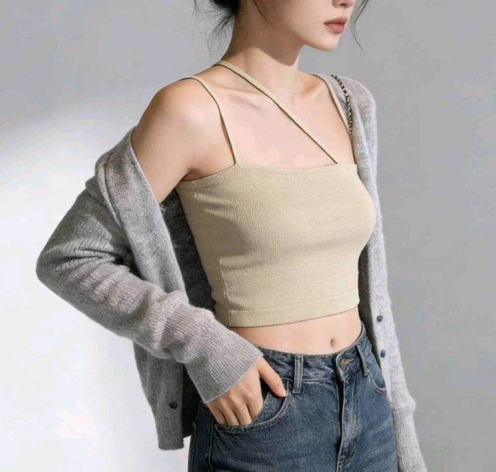 夏季新款品牌原单辣妹性感别致挂脖式斜肩冰丝针织吊带,独立包装带吊牌,均码面料柔软舒适弹力大,965件,全清4.9元超低价秒杀!分货加一!