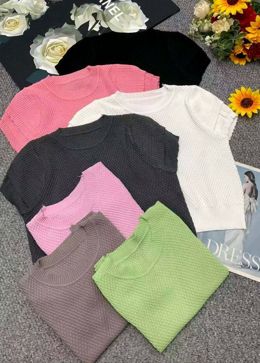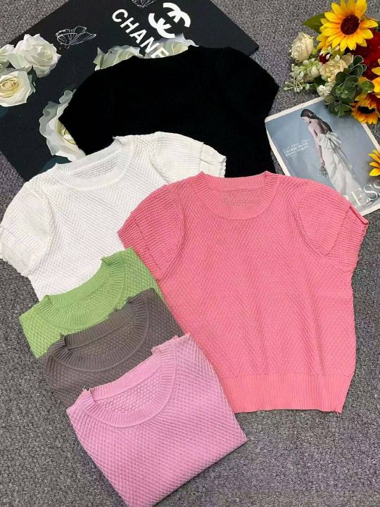 夏季新款女装设计感洋气泡泡袖圆领显瘦时尚短袖针织衫,独立包装,均码年龄柔软舒适弹力大,单款多色,2050件,全清6.9元超低价秒杀!分货加一!