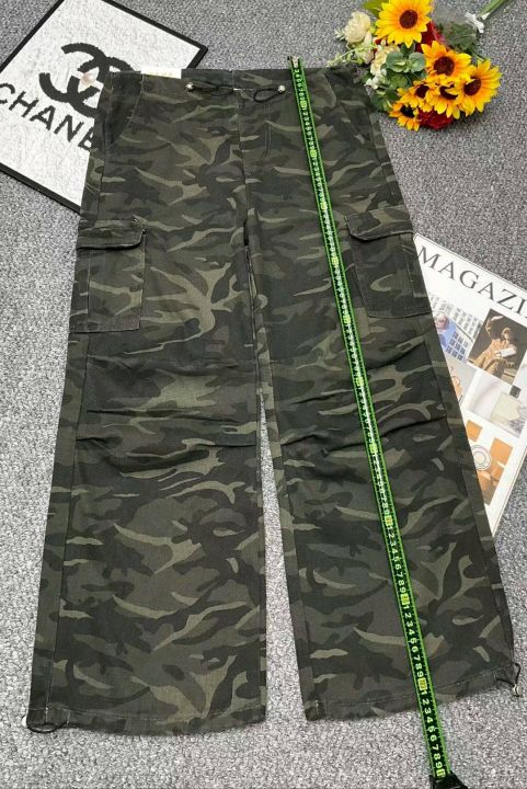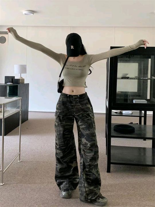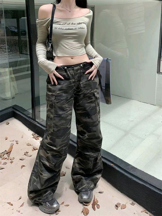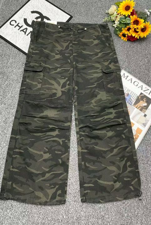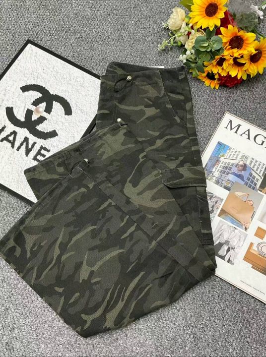 春季新款美式复古迷彩多口袋抽绳设计款宽松直筒阔腿束...