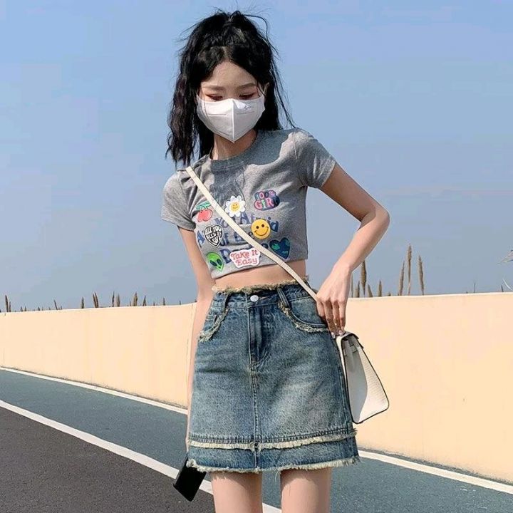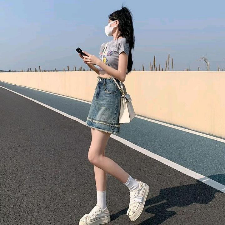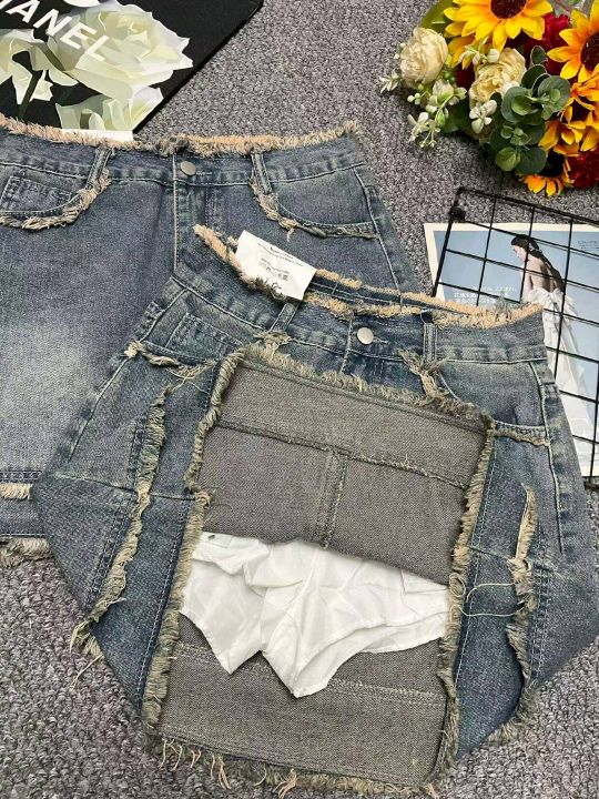 夏季新款洗水棉网红爆款设计款牛仔短裙,独立包装带腰...