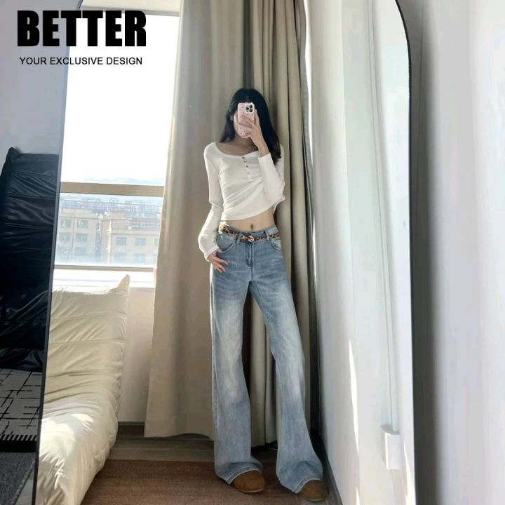 春季新款网红复古宽松百搭洗水棉直筒阔腿牛仔裤,独立包装带腰卡,码数XS-X...
