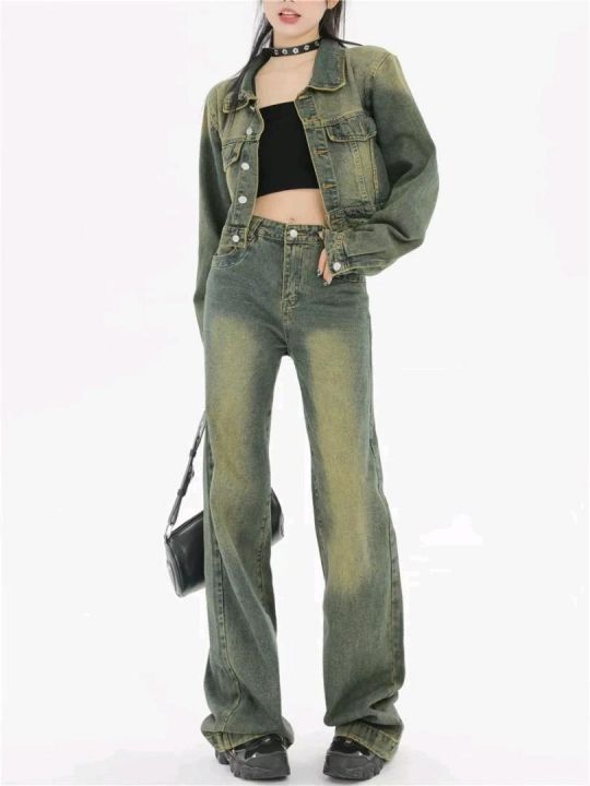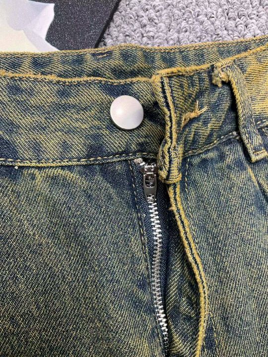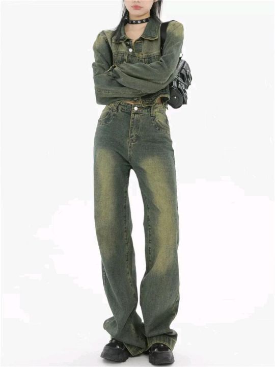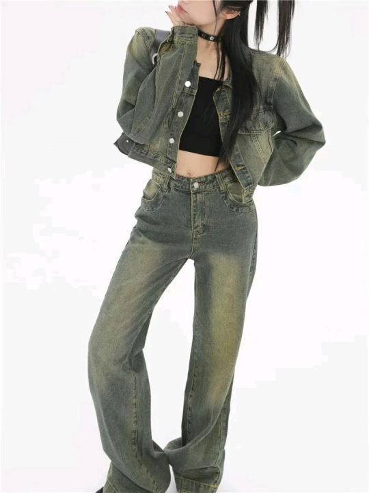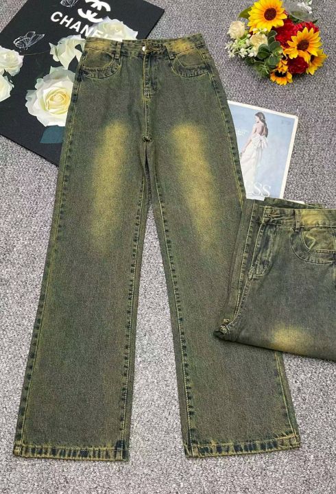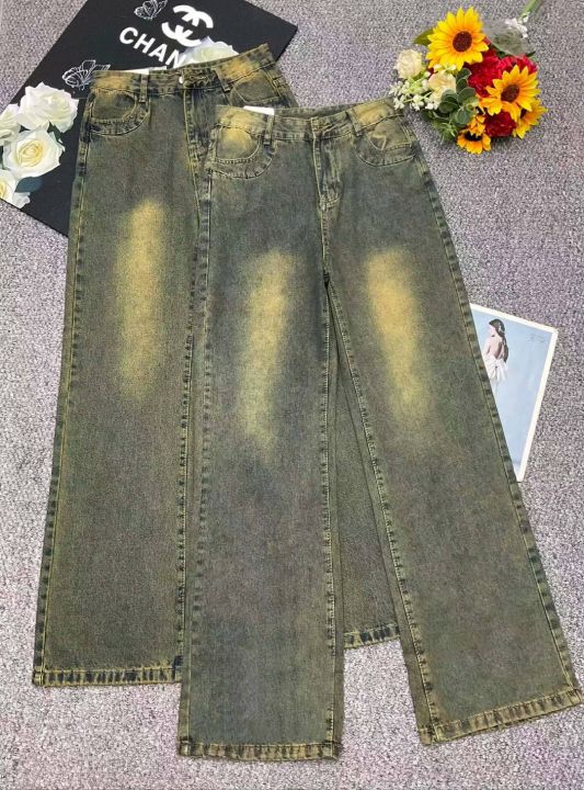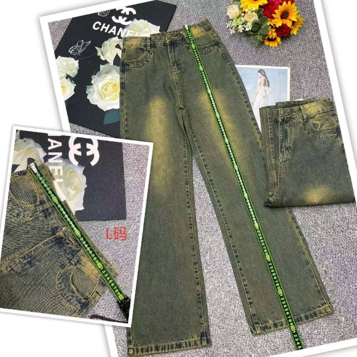 春季新款网红复古洗水棉牛仔直筒阔腿裤,独立包装带腰...