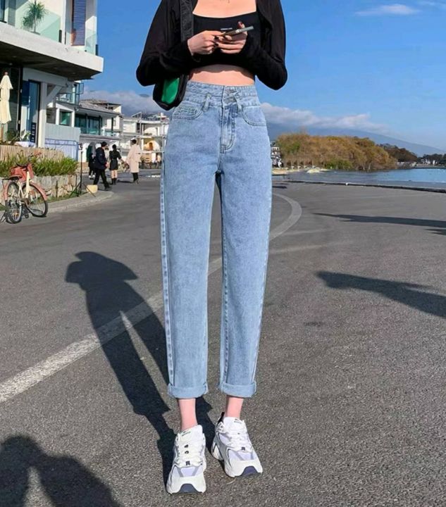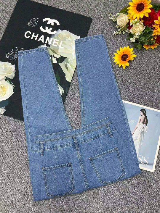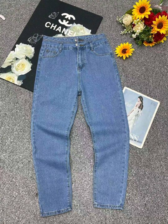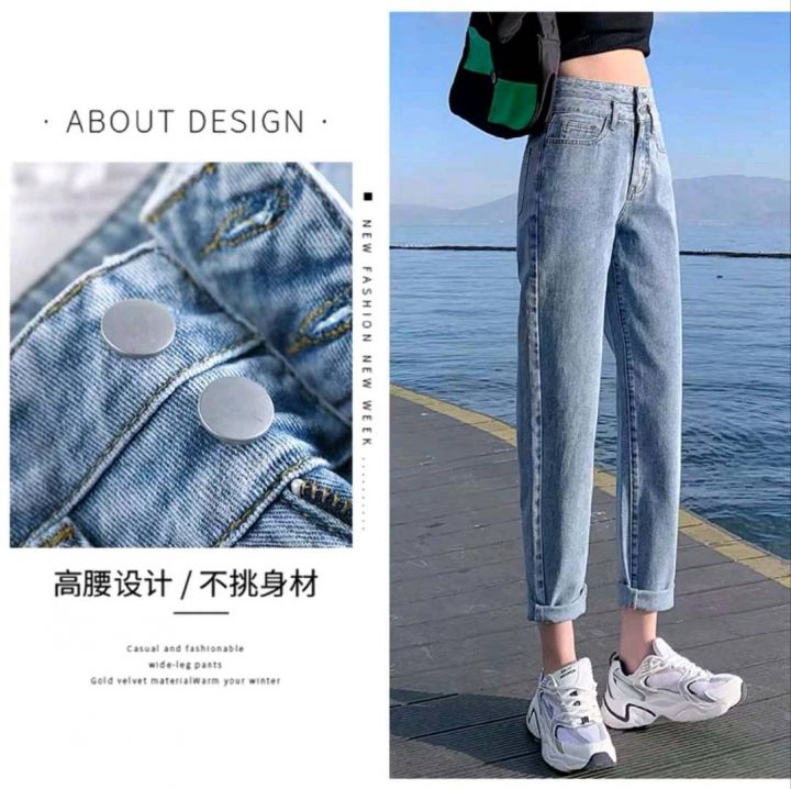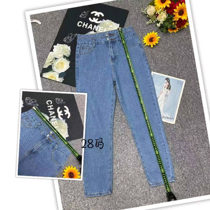 春夏季新款洗水棉品牌原单宽松百搭微胖MM复古多扣牛仔长裤,独立包装,码数28--32码,1700件左右,全清9.9元超低价秒杀!
