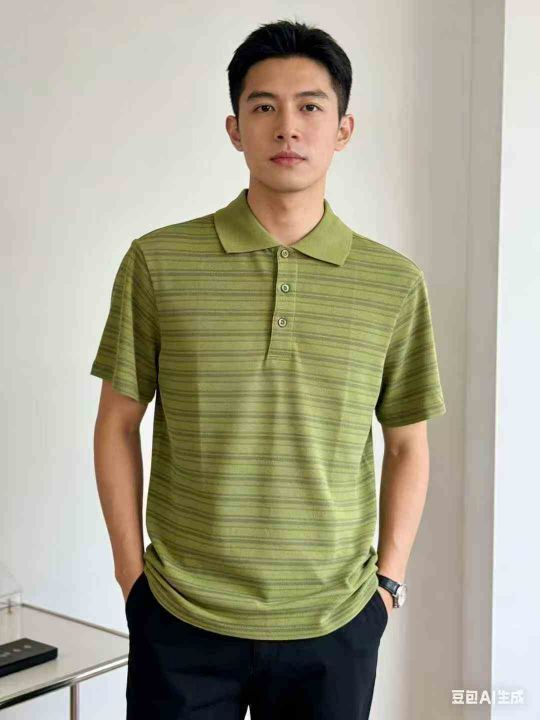 300件左左右经典翻领细条纹Polo衫,纯棉,品质好有弹...