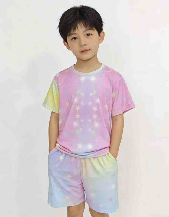 5.5清电商仓回收2795套外贸跨境热卖彩虹色渲染洋气儿童套装,码数120-160。...