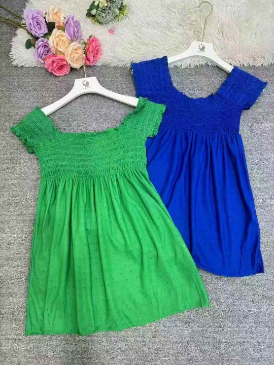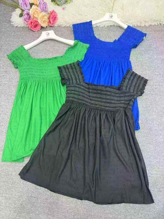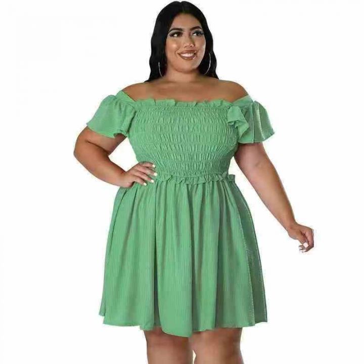 3000件左右,跨境欧美大码夏季女装一字领短袖大摆连衣裙精品华夫格短裙,独立包装,码数S-XL,分货➕0.5,货号001#31