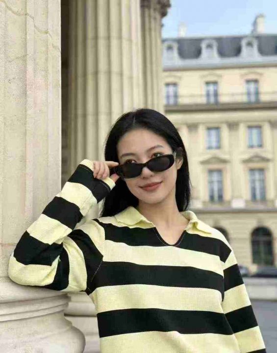 150件左右\'爆款秋季百搭休闲POLO领条纹宽松女新款慵懒风上衣,码数smlxl,独立包装,,货号001#31