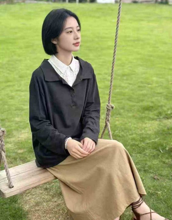 1980件\'舒适弹力长袖薄款衬衣女外穿时尚简约宽松显瘦POLO领套头上衣,码数s-4xl,独立包装,分货➕1,货号001#31