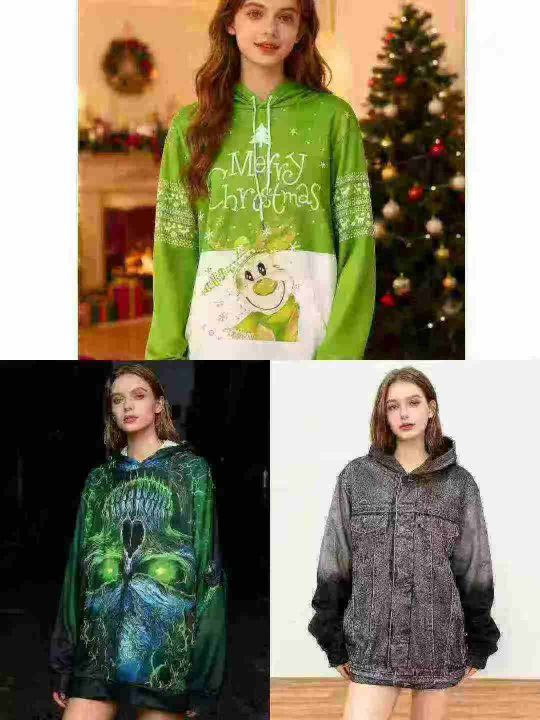 亚马逊独立站跨境外贸3D数码印花男女同款连帽卫衣,码...