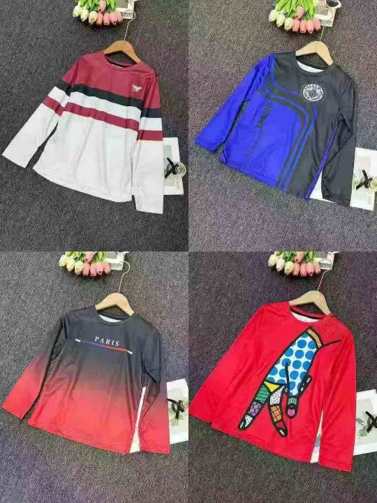 跨境外贸童壮印花长袖男女款T恤,大版宽松型后领包边 独立包装 码数120-170,数量3800件 分货加0.5