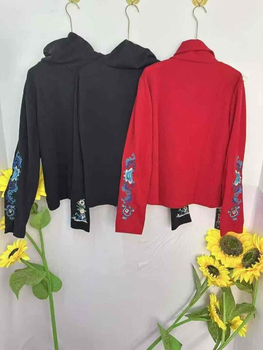 天猫下架,中国风秋装高领打底衫,刺绣工艺,两个颜色红色少,黑色有两种面料,货品干净,码数S—3 xL,数量240左右,全清5.8
