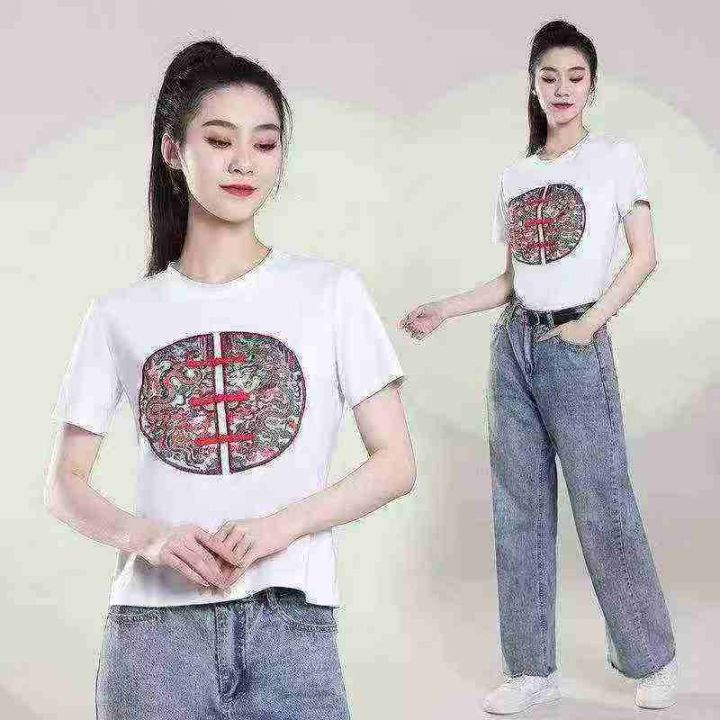5.8元,纯棉女装国风圆领T恤,320件,1-5码,独立包装...
