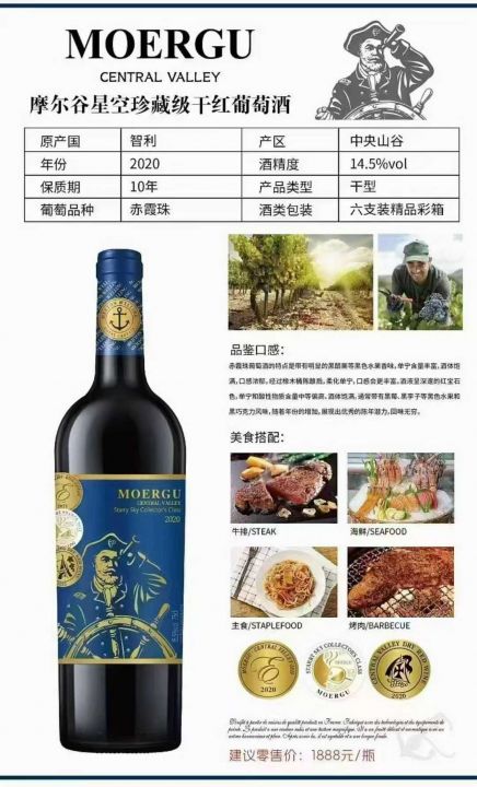 大几十元一箱,摩尔谷星空红酒,22年9月,14.5度,中央山谷产区,一箱6瓶,有个几百箱