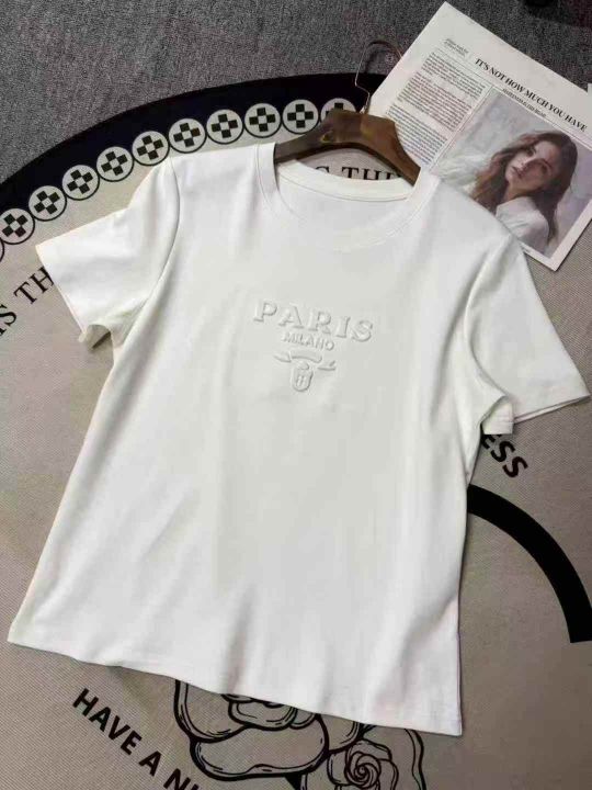 8.8清130件纯棉字母钢印短袖T恤女宽松显瘦正肩夏季新款简约圆领百搭上衣 品牌专柜货面料巨舒适 上身效果非常哇塞 后领包边到肩部 码数S-M-L