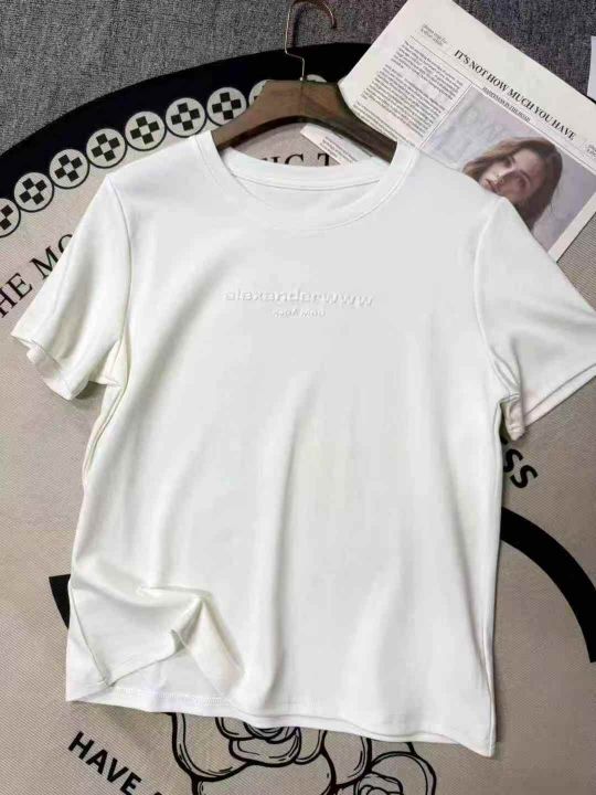 8.8清130件纯棉字母钢印短袖T恤女宽松显瘦正肩夏季新...