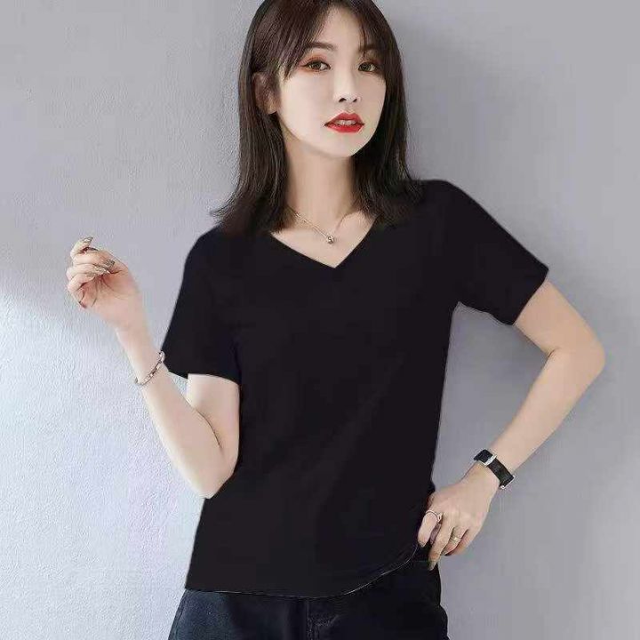 3.8清电商仓回收557件黑色纯棉显瘦复古辣妹V领T恤,码数M-3XL。面料柔软舒...